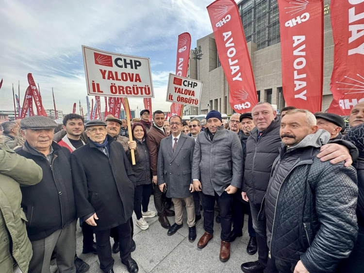 CHP Yalova İl Başkanlığı’ndan yapılan açıklamada “Kurtuluş yok tek başına, ya hep beraber ya hiçbirimiz. CHP Yalova İl Başkanımız Erdem Doğancı, Çiftlikköy İlçe Başkanımız Savaş Kaşıkçı, Termal İlçe Başkanımız Selahattin Aksoy, Armutlu İlçe Başkanımız İbrahim Demir ile birlikte kadınlarımızla, gençlerimizle ve çok sayıda partilimizle on binlere omuz olmak için Çağlayan Adliyesi’ndeydik. Haksız soruşturmalarla, davalarla baskı ve tehdit altına alınmak istenen İstanbul Büyükşehir Belediye Başkanımız Ekrem İmamoğlu'nun yanında; toplumsal vicdanı yaralayan tüm hukuksuzlukların karşısında olmak için Çiftlikköy Belediye Başkanımız Adil Yele, Çınarcık Belediye Başkanımız Avni Kurt, Koru Belediye Başkanımız Kamil Yaman, Subaşı Belediye Turan Canbay, Kaytazdere Belediye Başkanımız Doğan Çitil ile birlikteydik” ifadeleri kullanıldı.