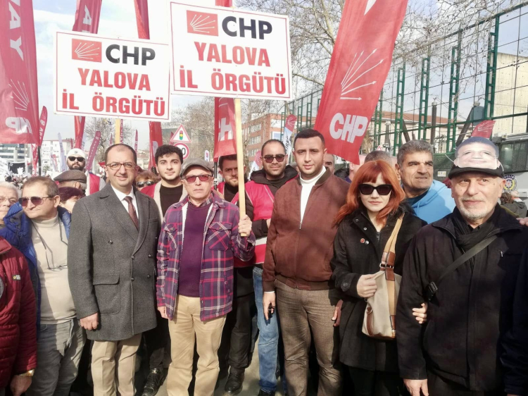 CHP Yalova İl Başkanı Erdem Doğancı, Çiftlikköy İlçe Başkanı Savaş Kaşıkçı, Termal İlçe Başkanı Selahattin Aksoy, Armutlu İlçe Başkanı İbrahim Demir ile birlikte CHP’li kadınlar ve gençler soluğu İstanbul Adalet Sarayı’nın önünde aldı.