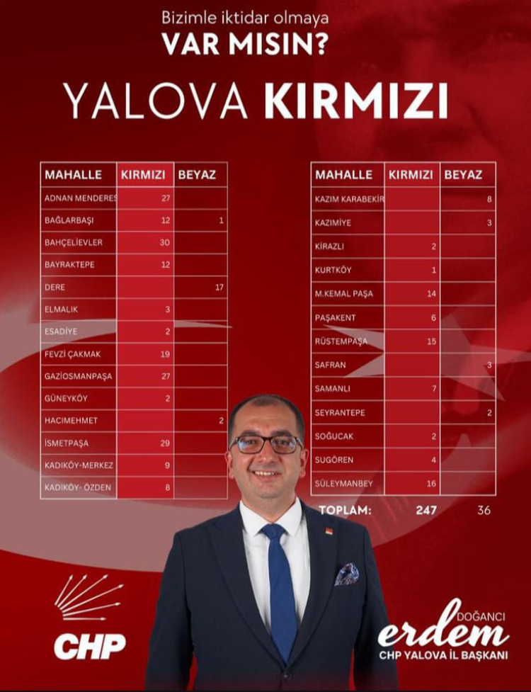 Kırmızı Listenin elde ettiği bu üstünlük, Erdem Doğancı'nın il başkanlığı yolunda yeniden güçlü bir konumda olduğunu gösteriyor. Mahalle bazlı sonuçlar ise şöyle: