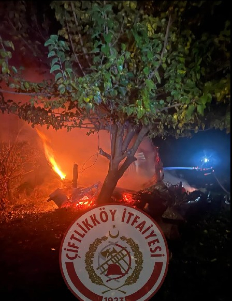 Çiftilkköy’de alev topuna dönen baraka küle döndü