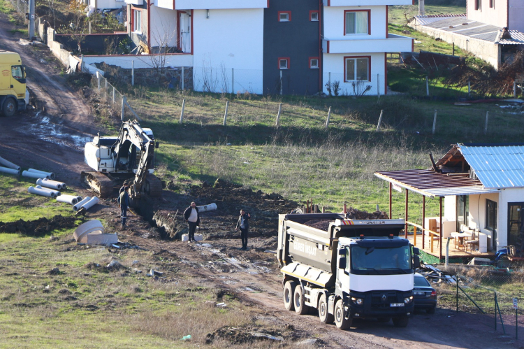 Çiftlikköy Belediyesi Su ve Kanalizasyon Müdürlüğü ekipleri, 500 Evler Mahallesi’nin küme evlerden sonraki bölümünde 2 bin metre uzunluğunda kanalizasyon hattı döşeme çalışmalarına başladı