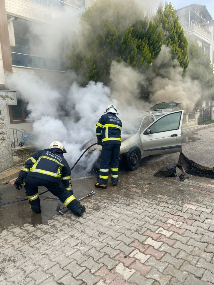 Çiftlikköy İtfaiye Müdürlüğü ekipleri, Çiftlikköy’de park halinde yanmaya başlayan araca müdahale ederek yangını kısa sürede söndürdü.
