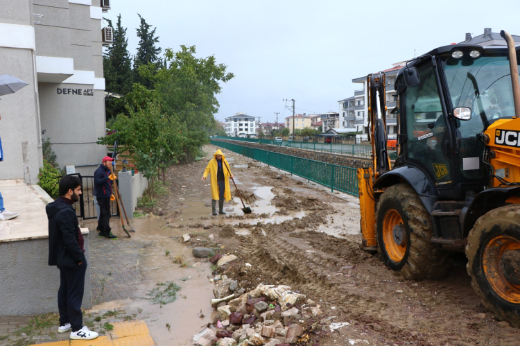 Çiftlikköy Belediyesi ekipleri yağmur mesaisindeydi