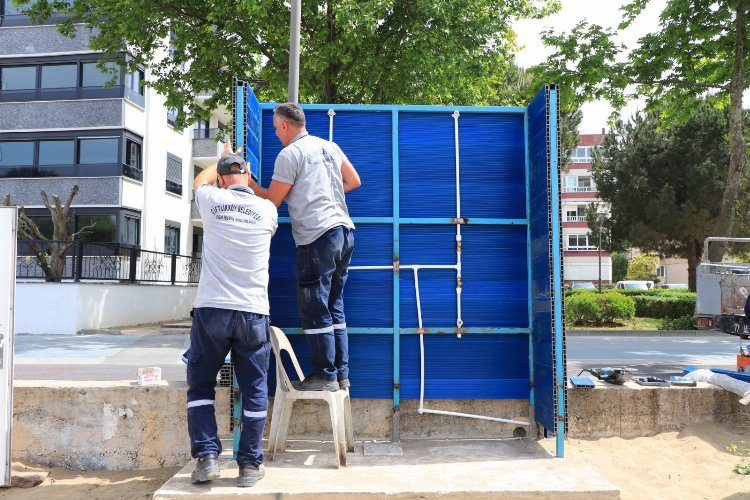 Sahilde bulunan palmiye ağaçlarına çevre düzenlemesi yapılırken vatandaşların kullanması için duş kabini montajı da tamamlandı. Yaşar Okuyan Parkı çevresinde de boyama ve düzenleme çalışmaları hız kesmeden devam ediyor.
