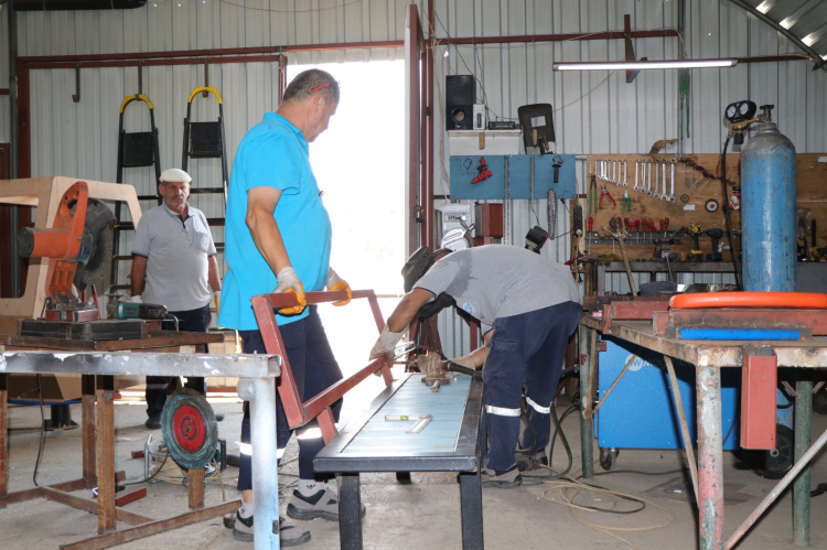 Geri dönüştürülebilir hurda malzemeler, Park ve Bahçeler Müdürlüğü kaynak atölyesinde bir araya getiriliyor. Titizlikle çalışan ekipler, ellerindeki malzemelerden yeni banklar ve kamelyalar imal ediyor. Üretilen kent mobilyaları, özenle boyandıktan sonra parklara ve ihtiyaç duyulan yerlere monte ediliyor.
