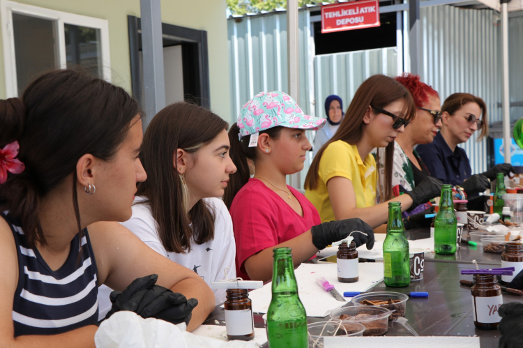 Sıfır Atık Merkezi’ne gelen atık cam kavanozların yeniden kullanılarak değerlendirildiği atölyede sadece esanslar dışarıdan temin edilirken, diğer tüm malzemeler evlerde bulunan ve yeniden kullanılabilen malzemelerden seçildi. Sıfır atık hedefine uygun olarak geri dönüştürülerek elde edilen kokulu mumları, katılımcılar da geri dönüşüm sürecini uygulamalı olarak deneyimlemiş oldu.