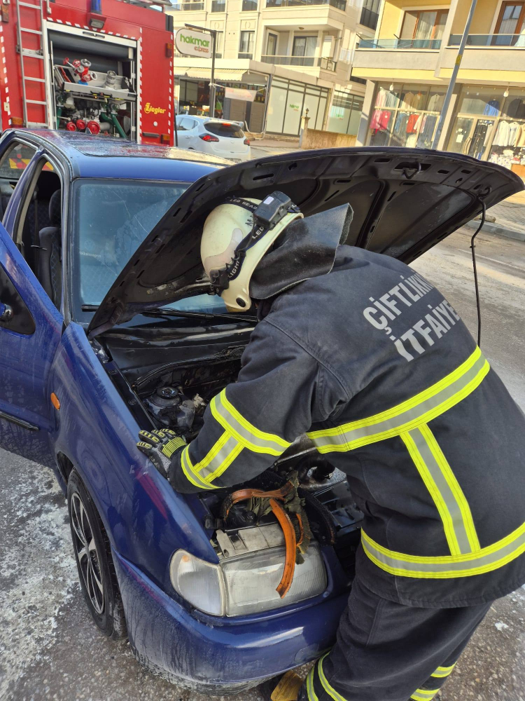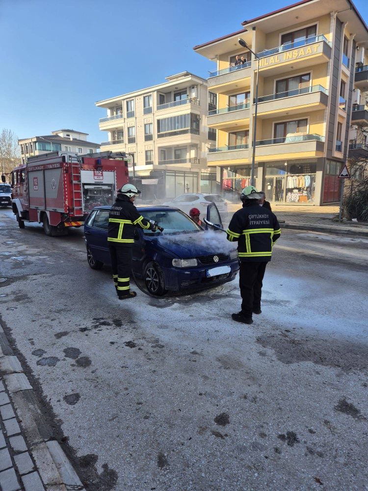 Yangını fark eden sürücü ve yanındakiler aracı park ederek can havliyle dışarıya çıktıktan sonra 112 Acil Çağrı Merkezine ihbarda bulundu.
