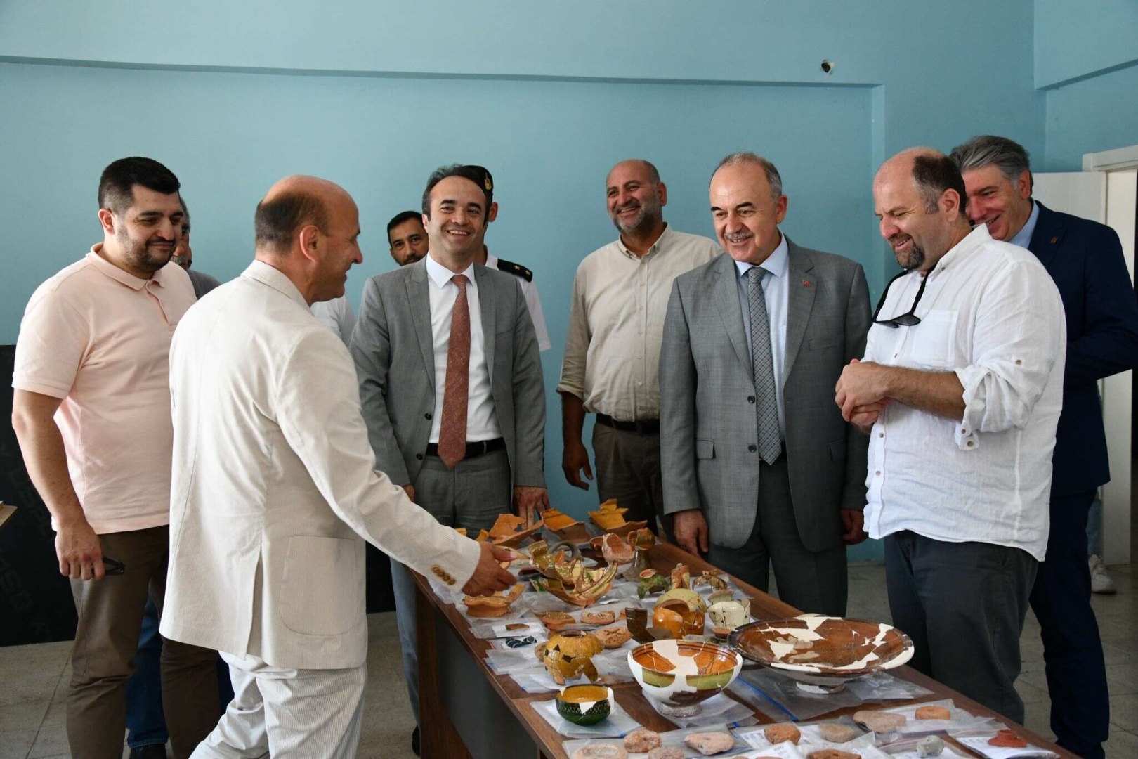 Programa katılan Vali Muammer Erol ve beraberindekiler kazı evini gezerek çalışmalar hakkında bilgi aldı. Elde edilen bulgular içinde tarihin bilinen ilk 'Hashtag' işaretinin yer aldığı seramik parçası ilgi gördü.