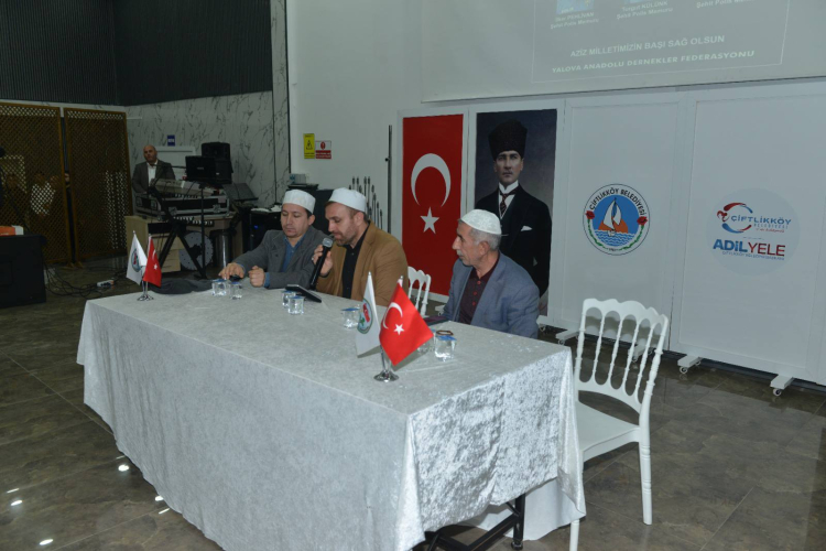 Çiftlikköy Belediye Düğün Salonu’nda Yalova Anadolu Dernekler Federasyonu tarafından düzenlenen programa Yalova Belediye Başkanı Mehmet Gürel, İl Emniyet Müdürü Ümit Bitirik, il protokolü, siyasi parti il ve ilçe teşkilatı temsilcileri, sivil toplum kuruluşu temsilcilerine ve vatandaşlar katıldı.