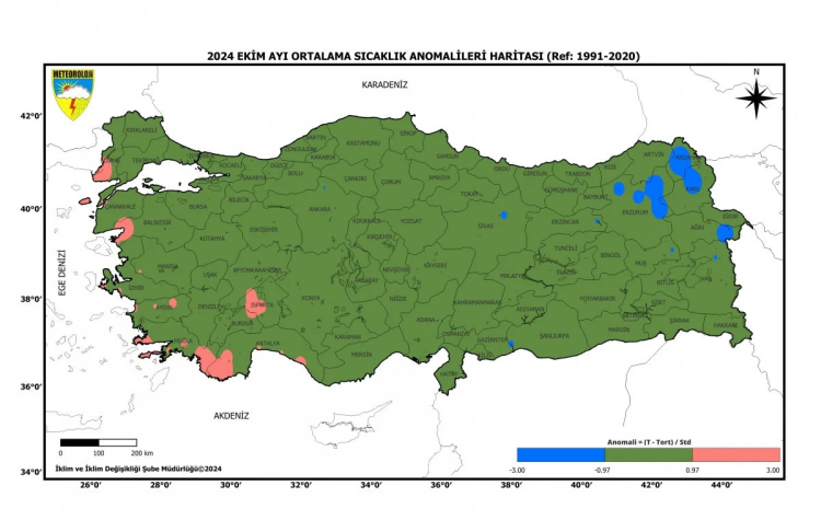 MGM verilerine göre 1991-2020 sıcaklık normalleri ekim ayı ortalama sıcaklığı 15,6 derece olarak kaydedilirken, 2024 yılı Ekim ayı sıcaklığı 15,8 derece ile normalin 0,2 derece üzerinde gerçekleşti..