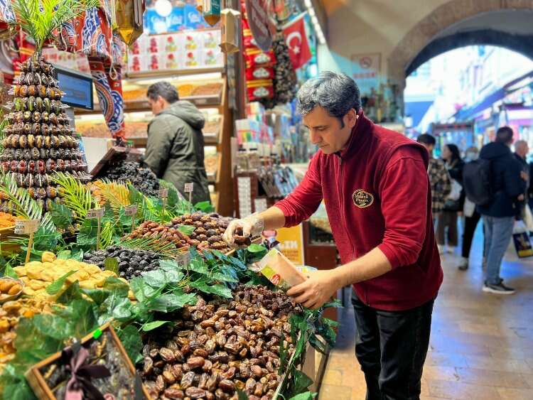 20 yıldır Mısır Çarşısı'nda esnaf olan Murat Üzümcü, “Medine hurmasının kilosu 480 lira, tanesi ise 15 lira. Tane fiyatları 10 lira ile 15 lira arasında değişiyor, hatta 20 liraya kadar yükseliyor. Geçen yıl daha ucuzdu. Kudüs’ten geldiği için dolar arttıkça artıyor, dolara göre fiyat belirleniyor." dedi