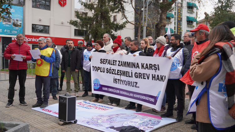 Toplu sözleşme süreci, maaş artışları ve bütçe politikalarına tepki göstermek amacıyla 81 ilde iş bırakan Kamu Emekçileri Sendikaları Konfederasyonu (KESK) üyeleri, Yalova’da Cevdet Aydın Parkı’nda toplanarak basın açıklaması yaptı.