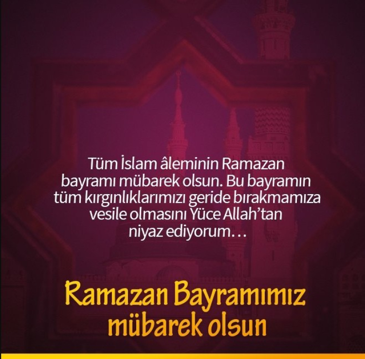 Sevgi dolu yüreklerle gelsin bayram, tüm dünyaya barış getirsin. Ramazan Bayramınız mübarek olsun.