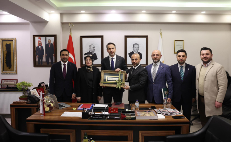 Öncesinde AK Parti İl Başkanı Umut Güçlü ile makamında bir süre sohbet eden Bakan Bayraktar’a hediye takdim edildi.