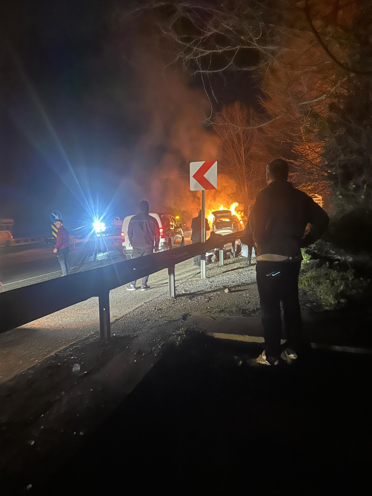 Yalova- Bursa karayolu Süpürgelik mevkii Esadiye Köy girişi istikametinde alev topuna dönen otomobil küle döndü. Araçtaki vatandaşlar yanarak can vermekten son anda kurtuldu.