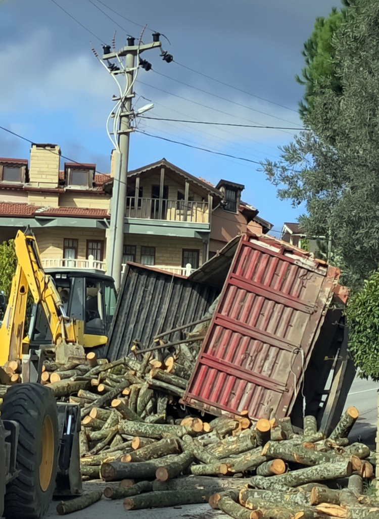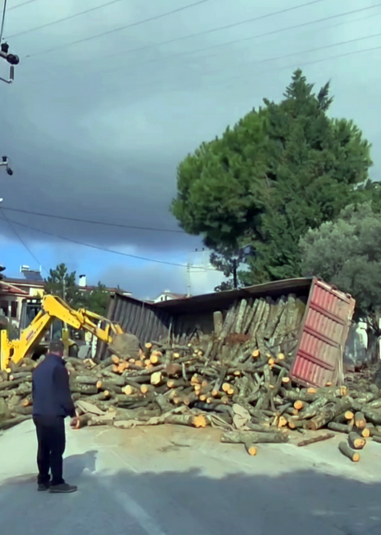 Yalova’nın Çınarcık ilçesine bağlı Esenköy beldesinde freni patlayan odun yüklü kamyon devrildi. Kazada şans eseri yaralanan olmadı.