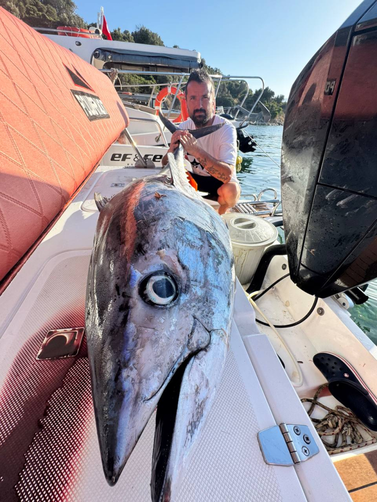 Fenomen Sportif Balıkçı Selçuk Koşar orkinosla boğuşan çiftin imdadına yetişti