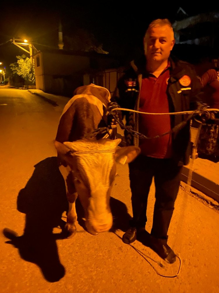 Yalova’nın Çiftlikköy ilçesi Sultaniye Mahallesi'nde ahırdan kaçan ineğin sahibinin de hayvanı yakalamakta zorlandığı haberini alan Çiftlikköy İtfaiyesi ekipleri olay yerine sevk edildi. Firari inek, sokaklarda uzun bir süre adeta bir kaos yarattı. Korktuğu için saldırgan tavırlar da sergileyen inek, ekipler tarafından köşeye sıkıştırılarak yakalandı. İple bağlanan inek, sahibine teslim edilerek ahıra geri döndürüldü.