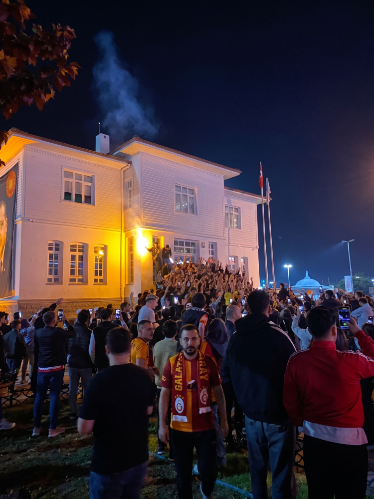 Trendyol Süper Lig’in kaderini belirleyen dev derbide Galatasaray, ezeli rakibi Fenerbahçe’yi Ali Sami Yen Spor Kompleksi RAMS Park’ta ağırladı. Karşılaşmayı Victor Osimhen (40’), Barış Alper Yılmaz (67’ pen.) ve Lucas Torreira’nın golleriyle 3-0 kazanan sarı-kırmızılı ekip, puanını 74’e yükselterek şampiyonluk yolunda dev bir adım attı. Bitime 3 hafta kala en yakın takipçisi Fenerbahçe ile farkı 7’ye çıkaran bu zafer, Yalova’da yaşayan binlerce Galatasaray taraftarını sokağa döktü. Maçın sona ermesiyle birlikte formalarını giyip bayraklarını alan taraftarlar, Yalova Kent Müzesi önünde toplandı. Ellerinde meşalelerle alanı adeta bayram yerine çeviren taraftarlar, marşlar ve tezahüratlarla şampiyonluk şarkıları söyledi. Meşalelerin aydınlattığı meydanda gece geç saatlere kadar süren kutlamalar, Yalova sokaklarında görsel bir şölen oluşturdu. Genç yaşlı her yaştan taraftarın katıldığı etkinlikte coşku tavan yaptı.