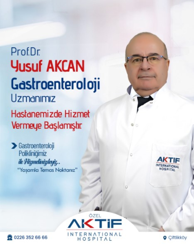 Gastroenteroloji alanında uzun yıllara dayanan akademik ve klinik deneyime sahip olan Prof. Dr. Yusuf Akcan, 2026 yılı itibarıyla Aktif International Çiftlikköy Hastanesi’nde hasta kabulüne başladı.