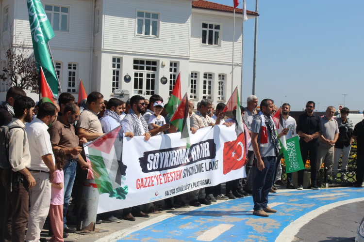 Yalova’da bir araya gelen 80 kişilik grup, Gazze’deki insanlık dramına dikkat çekmek ve İsrail’in saldırılarını protesto etmek amacıyla Ankara’da yapılacak yürüyüşe katılmak üzere yola çıktı.