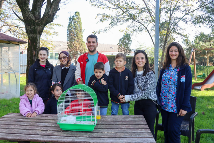 Merkezde görevli veteriner hekimler tarafından ginepigin sağlık durumu, bakım ihtiyaçları ve beslenme koşulları hakkında ayrıntılı bilgi alan öğrenciler, hayvan sevgisi ve sorumluluk bilincinin önemine dair keyifli bir sohbet gerçekleştirdi.