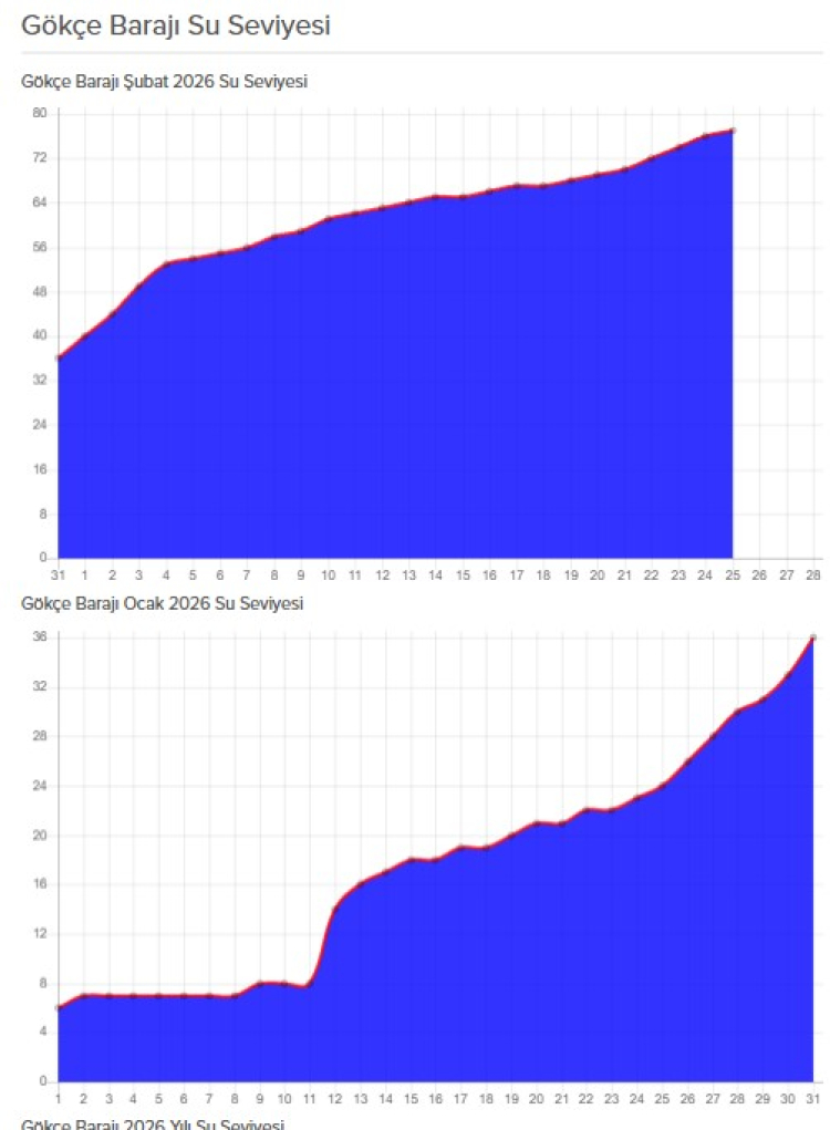Yalova’nın içme suyu ihtiyacını karşılayan Gökçe Barajı’nda doluluk oranı Ocak ayının başlarında yüzde 5 sevilerine kadar düşmüştü. Kuraklık nedeniyle yürürlüğe giren Acil Su Eylem Planı çerçevesinde kentte 1 aydan fazla bir süre su kesintisine gidilmişti. Ancak Gökçe Barajı’ndaki su seviyesi, son haftalarda etkisini hissettiren yağışların ardından yükselişe geçti. Yeni yıl itibarıyla etkisini artıran yağışlarla birlikte Gökçe Barajı’nda su seviyesi yükselmeye başladı.