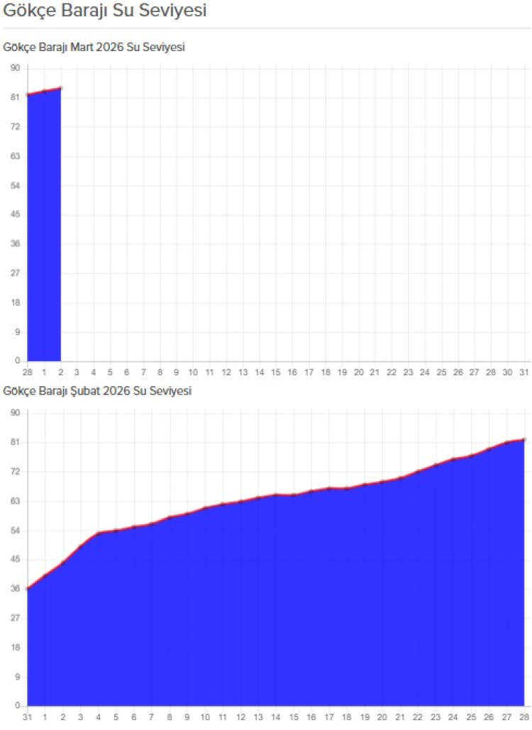 Yalova’nın içme suyu ihtiyacını karşılayan Gökçe Barajı’nda doluluk oranı Ocak ayının başlarında yüzde 5 sevilerine kadar düşmüştü. Kuraklık nedeniyle yürürlüğe giren Acil Su Eylem Planı çerçevesinde kentte 1 aydan fazla bir süre su kesintisine gidilmişti. Ancak Gökçe Barajı’ndaki su seviyesi, son haftalarda etkisini hissettiren yağışların ardından yükselişe geçti. Yeni yıl itibarıyla etkisini artıran yağışlarla birlikte Gökçe Barajı’nda su seviyesi yükselmeye başladı. Yeşil Körfez Su Birliği barajın doluluk oranını günlük yayımlamada başladı.