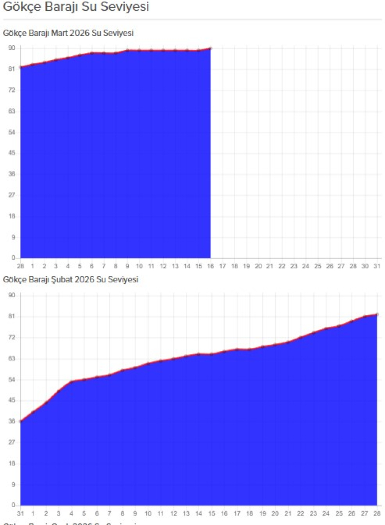 Yeni yıl itibarıyla etkisini artıran yağışlarla birlikte Gökçe Barajı’nda su seviyesi yükselmeye başladı. Yeşil Körfez Su Birliği barajın doluluk oranını günlük yayımlamada başladı. Yeşil Körfez Su Birliği’nin web sitesinde yayınlanan verilere göre baraj seviyesi 16 Mart Pazartesi günü itibariyle yüzde 90’a ulaştı. Önümüzdeki günlerde yağışların devam etmesiyle birlikte barajdaki doluluk oranının daha da yükseleceği öngörülüyor.