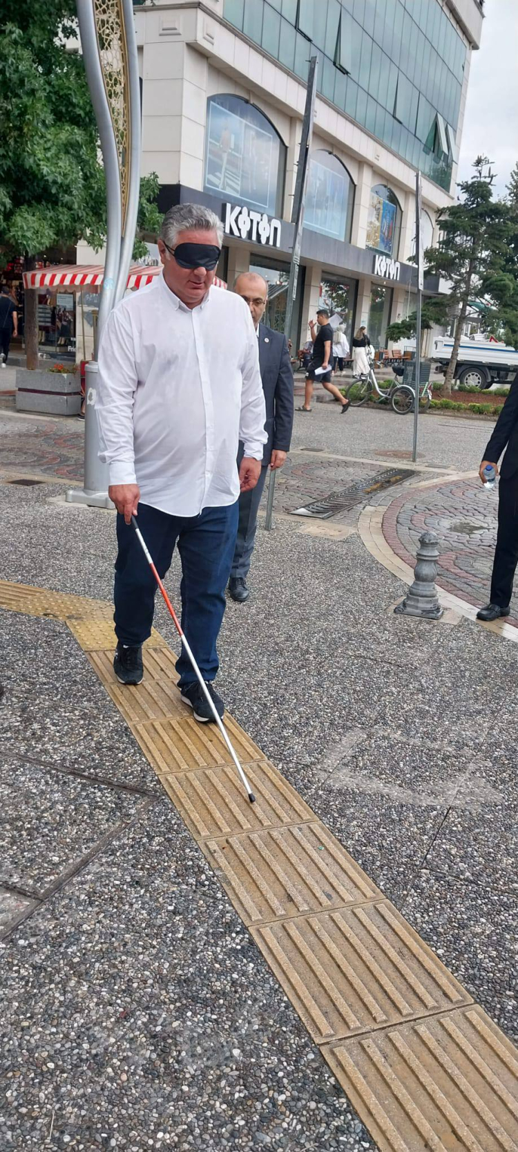 Avrupa Hareketlilik Haftası kapsamında engelli bireylerle bir araya gelen Yalova Belediye Başkanı Mehmet Gürel, gözleri kapalı şekilde bastonla yürüyerek engelli olmanın zorluklarını bizzat deneyimledi.