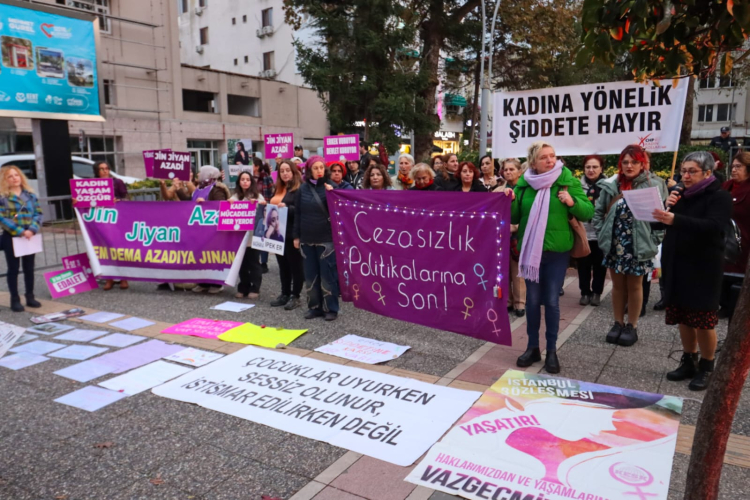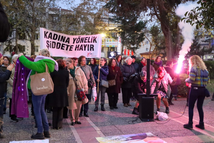 25 Kasım Kadın Platformu, kadına şiddete karşı Cevdet Aydın Parkı’nda düzenlediği etkinlikte şiddetle mücadele mesajını yineledi.