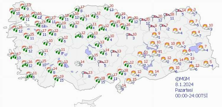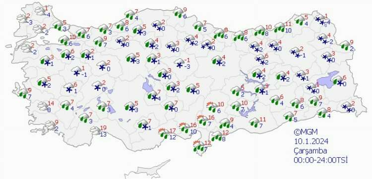 Meteoroloji'nin bu hafta için tahminlerine göre Çarşamba günü itibariyle kar yağışı ülkenin iç ve yüksek kesimlerinde yer yer etkili olacak. Özellikle Doğu Anadolu Bölgesi'nin yüksek kesimlerinde kar yağışının etkili olması beklenirken, Ankara ve çevresinde karla karışık yağmur, İzmir ve çevresinde ise sağanak yağış görülmesi bekleniyor.