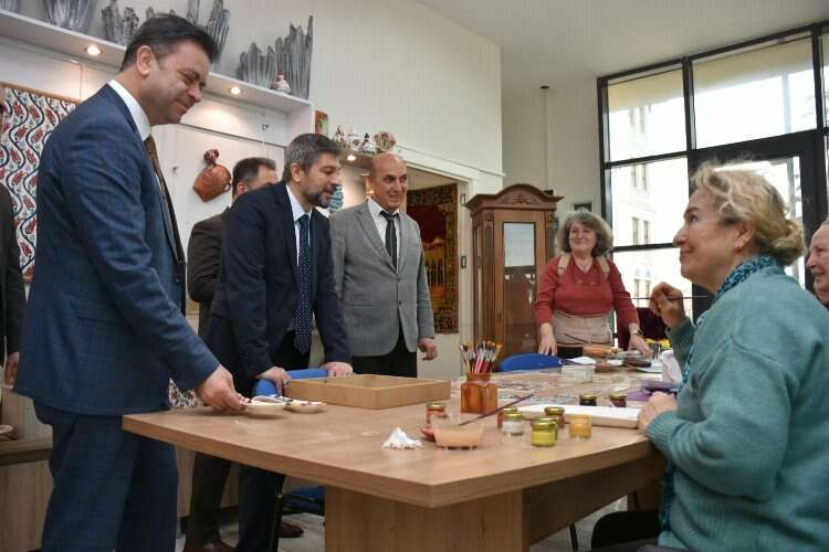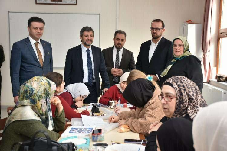 Öğrencilerin atölye çalışmalarını yerinde izleyen, hayat boyu öğrenme kapsamında açılan kurslara da katılan Mete Zehra Ekşinozlugil Kız Anadolu İmam Hatip Lisesi’nde tezhip, okçuluk, Arapça, hafızlık, musiki, resim, etkili okuryazarlık, ebru ve çini kurslarını; Sabri Ekşinozlugil Anadolu İmam Hatip Lisesinde ise dikiş, nakış kurslarını ziyaret etti.