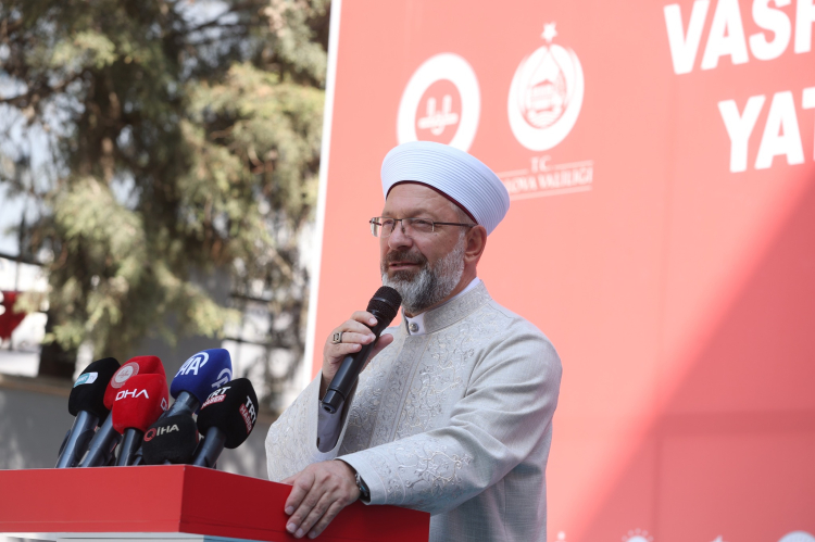 Daha sonra Vasfiye Turna Hafızlık Yatılı Kur’an Kursu Açılış Töreni’ne katılan Diyanet İşleri Başkanı Erbaş, buradaki konuşmasında, “İmam-ı Gazali diyor ki, yeryüzünde kötülüğün ortadan kalkmasının üç yolu vardır, bunlardan birisi vicdandır. Vicdanları eğitmemiz lazım. Bu kadar okullar, bu kadar eğitim müesseseleri eğer vicdanları eğitemiyorsa bir eksiklik var demektir. O eksikliği bizim tamamlamamız lazım. Eğer vicdanlar kötülükleri önleyemiyorsa kanunlar devreye girer diyor. Sonra diyor ki İmam-ı Gazali, ahiret bilinci olmadan kötülükleri ortadan kaldıramazsınız” ifadelerini kullandı.