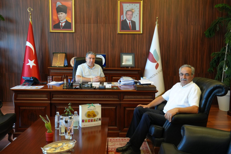 Yalova Üniversitesi Rektörü Prof. Dr. Mehmet Bahçekapılı'yı makamında ziyaret eden Yalova Atatürk Bahçe Kültürleri Merkezi Araştırma Enstitüsü Müdürü Dr. Yılmaz Boz kurumlararası işbirliğinin daha arttırılması için istişarelerde bulundu.