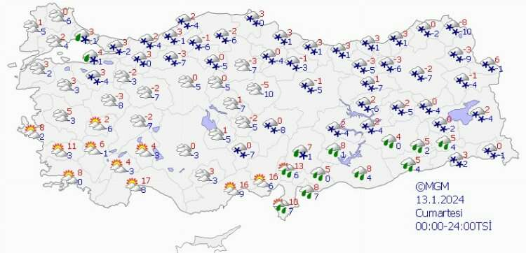 Meteoroloji’nin hava tahmin raporuna göre yurt genelinde etkili olmaya başlayan soğuk ve yağışlı havanın hafta boyunca devam edeceği, iç ve yüksek kesimlerde kar, kıyı kesimlerde ise sağanak yağış ve karla karışık yağış olarak görülmesi bekleniyor. Sıcaklık değerlerinde ise cuma gününden itibaren tekrar düşüş bekleniyor.