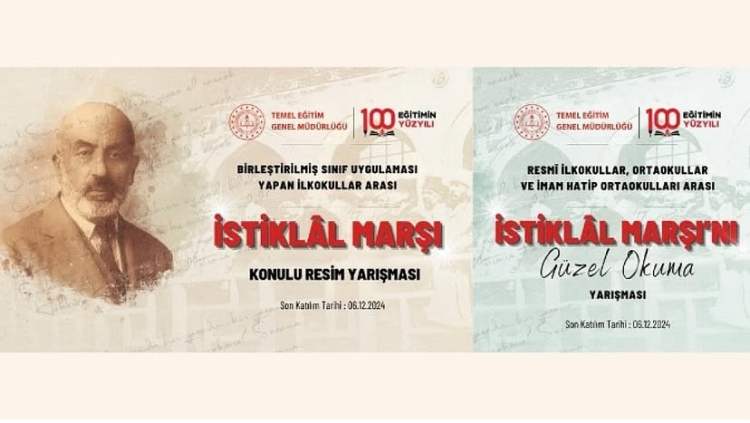 İstiklal Marşı konulu Resim Yarışması’nın birleştirilmiş sınıf uygulaması yapan ilkokullar arasında, İstiklal Marşını Güzel Okuma Yarışması’nın ise resmi ilk, orta ve imam hatip ortaokulları arasında yapılacağı bildirildi.