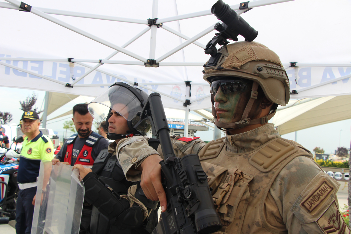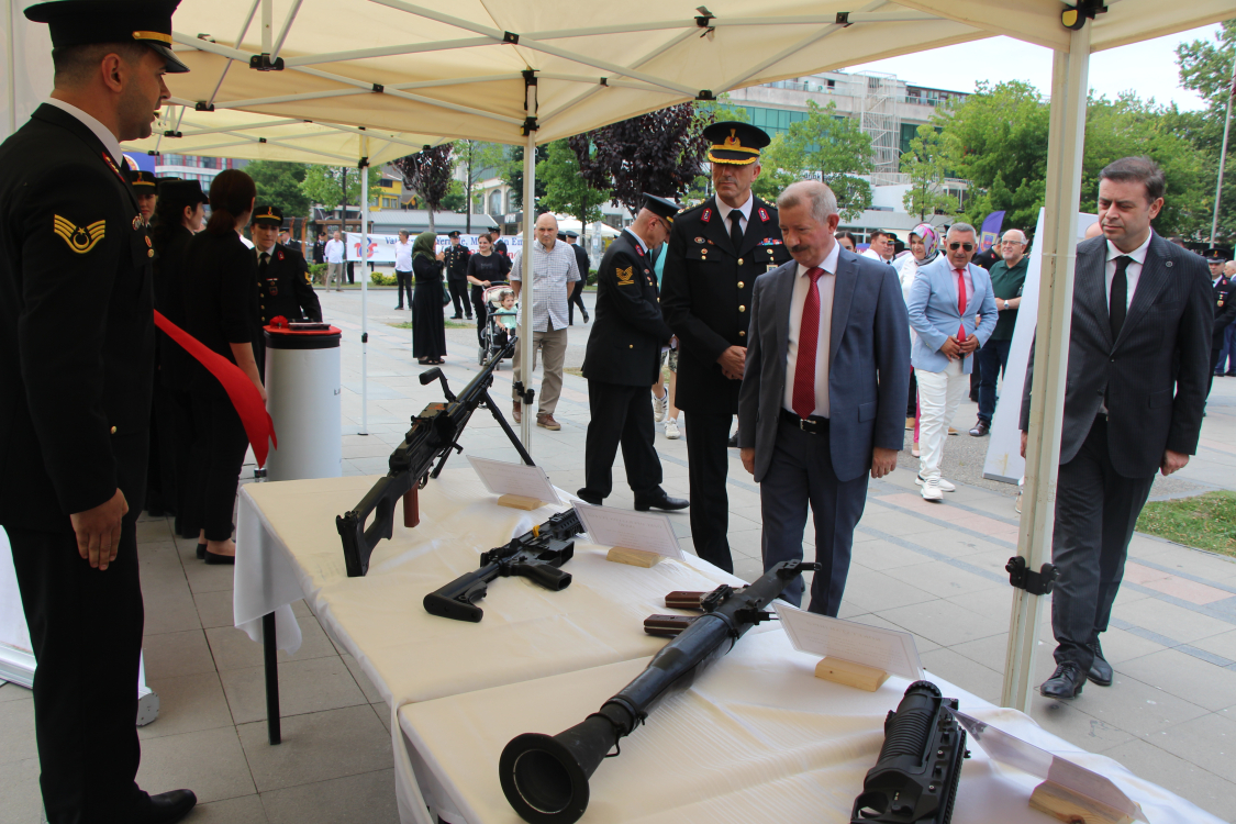Protokol mensupları tören sonunda Jandarma Komutanlığı tarafından askeri araç ve gereçlerin tanıtıldığı sanatları da gezerek bilgiler aldılar.