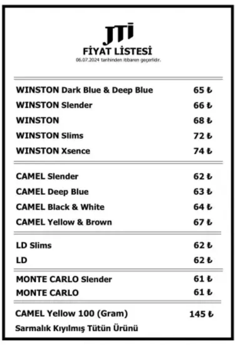 İndirim kararı sonrası JTI’de güncel fiyat listesi şu şekilde: