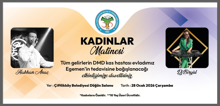 Dernek tarafından düzenlenecek olan Kadınlar Matinesi, hem eğlenceyi hem de yardımlaşmayı bir araya getirerek Egemen’in tedavi sürecine umut olmayı hedefliyor. Etkinlikten elde edilecek tüm gelirlerin, hiçbir kesinti yapılmadan Egemen’in tedavisi için bağışlanacağı bildirildi. Toplumsal dayanışmayı güçlendirmek amacıyla organize edilen Kadınlar Matinesi, 28 Ocak 2026 Çarşamba günü Çiftlikköy Belediyesi Düğün Salonu’nda gerçekleştirilecek. Kadınlara özel olarak düzenlenen etkinlikte, sevilen sanatçı Hakan Anaç sahne alarak katılımcılara müzik dolu anlar yaşatacak. Gün boyunca sürecek eğlence programı ise DJ Birgül’ün performansıyla devam edecek. Müzik, dans ve dayanışmanın bir arada olacağı organizasyonun Yalova’da geniş katılım görmesi bekleniyor.
