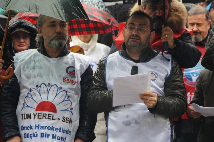Açıklamasının devamında “Kamu emekçileri, işçiler ve emekliler olarak insanca yaşayacak ücret taleplerimizi görmezden gelen siyasi iktidara karşı itiraz ediyoruz. Kamu emekçilerinin maaşlarına yapılan %11,54’lük zam, alın terimize ve emeğimize yapılmış büyük bir hakarettir. Bu hakaret yalnızca kamu emekçilerini değil, toplumun geniş kesimlerini de derinden yaralamaktadır. Ekonomik krizle her geçen gün daha da ağırlaşan yaşam koşulları, temel ihtiyaçlarımızı karşılayamayacak duruma gelmemize yol açmıştır. Açlık sınırında yaşamaya zorlanan milyonlarca insan olarak, bu düzenin sürdürülemez olduğunu haykırıyoruz” sözlerini sarf eden sendika temsilcileri, şunları ekledi: “2025 yılına, milyonlarca çalışanı ilgilendiren %30’luk asgari ücret zammı ve kamu emeklilerine yapılan %11,54’lük sefalet artışı ile girdik. Bu zamlar, yurttaşlarımızın büyük bir çoğunluğunu açlığa mahkûm etmektedir. Bu kölelik düzeni ile hayatta kalmak mümkün değildir.”