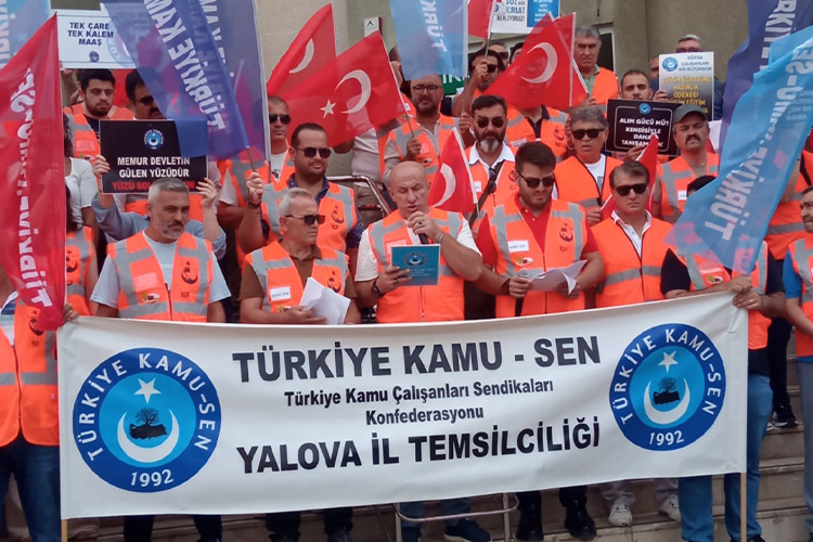 Türkiye Kamu-Sen Yalova İl Temsilciliği, Yalova Defterdarlığı önünde gerçekleştirdiği basın açıklamasında, memur ve emeklilerin artan yaşam maliyetleri karşısında ezildiğine dikkat çekti. Bugün burada yalnızca kendi geleceğimiz için değil, 4 milyon kamu çalışanı, 2,5 milyon emekli ve aileleriyle birlikte 25 milyon insanımızın onurlu bir yaşam mücadelesi için toplandık.