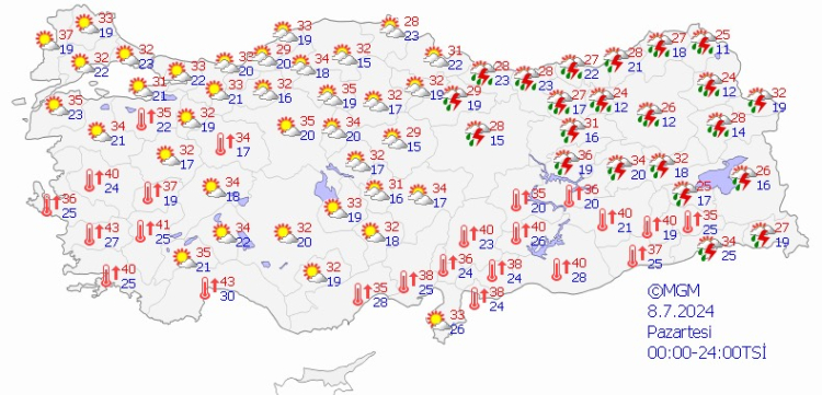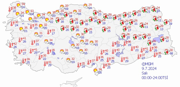 Temmuz ayının ikinci haftasında Ege ve Akdeniz başta olmak üzere yurt genelinde sıcaklık değerleri mevsim normallerinin 4 ila 6 derece üzerine çıkacak.