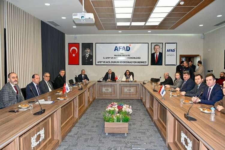 Marmara Bölgesi’nde depremin hayatın bir gerçeği olduğunu vurgulayan Yalova Valisi Dr. Hülya Kaya, “Bundan sonraki süreçte kentimizde riski azaltmaya yönelik çalışmalar yapmak istiyoruz. Bugün çalışma arkadaşlarımızla bir araya geldik. Kentimizde başta kamu, kurum ve kuruluşları olmak üzere hangi kurumlarda risk yönetimine dair neler yapılacak onları değerlendirdik. Deprem hayatımızın bir gerçeği. Buna hazırlık yapmamız lazım. Sadece kamu tarafında yapılan hazırlıkla da riskin yönetilmesi mümkün değil. Dolayısıyla vatandaşlarımızın da bu riskin yönetilmesine dair iş birliği yapmaları gerekiyor. Eğer evleri eski ise, 99 depremi öncesinde yapıldıysa bir an önce kentsel dönüşüme geçilmesi noktasında gerekli desteği vermeleri gerekiyor. Buradan Yalovalı hemşerilerimize ‘mutlaka oturduğunuz evlerin güvenli olmasına özen gösterin, bununla ilgili yapılacak çalışmalara el birliği ile destek verelim ve çok büyük evlerde değil ama güvenli evlerde yaşayabilmemiz için biraz fedakarlık yapalım’ diye seslenmek istiyorum. Bu fedakarlığı göstermediğimizde daha sonrasında biz arama ve kurtarma ya da afet sonrasındaki afet yönetimi ile sahada olmak zorunda kalıyoruz. Ama bu da çok büyük bir maliyet karşımıza çıkartıyor. Deprem gelmeden, afetler gelmeden gerekli önlemlerimizi alalım. Bununla ilgili de ben herkesin gerekli hassasiyeti göstereceğini düşünüyorum” dedi.