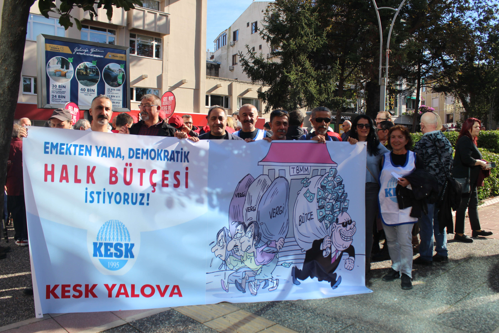 Kamu Emekçileri Sendikası Konfederasyonu (KESK) Yalova topluluğu Cevdet Aydın Parkı’nda gerçekleştirdiği basın açıklamasında, “Emeği ile geçinen kesimler olarak, halk olarak her geçen gün daha fazla yoksullaşıyoruz. Daha fazla güvencesiz hale getiriliyoruz. Ülkeyi yönetenler ise yıllardır anlattıkları masallara yenilerini eklemeye devam ediyor” ifadelerine yer verildi.