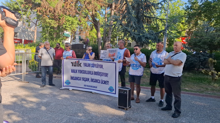 Kamu Emekçileri Sendikaları Konfederasyonu oluşturan sendikaların başkanlarının katılımı ile Cevdet Aydın Parkı önünde basın açıklaması yapıldı. KESK üyeleri, ''TÜİK yalan söylüyor'' pankartı taşırken attıkları sloganlarla da iktidarı eleştirdiler.