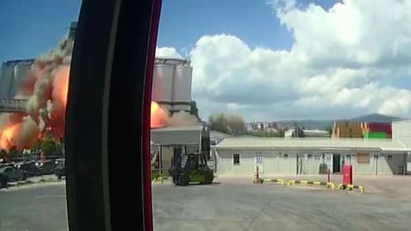 Çıkan yangını söndürmek için olay yerinde çalışmalar sürüyor. Duman bütün şehri kapladı. Patlamanın neden çıktığı henüz net bir şekilde açıklanmadı.