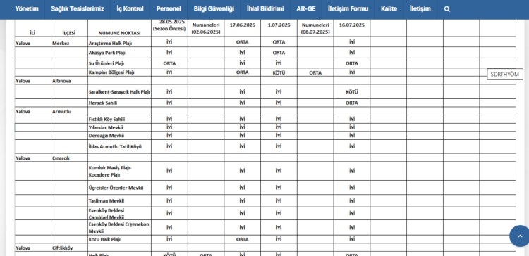 Sağlık İl Müdürlüğü'nün kamuoyuna açık veri portalında paylaşılan bilgilere göre, plajın su kalitesi sezon başından beri "iyi" seviyedeyken, 8 Temmuz 2025 tarihli son numunede ani bir düşüş yaşandı. Plajın sezonluk ölçüm karnesi şu şekilde:
