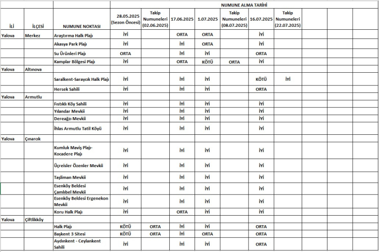 Yalova'nın Altınova ilçesine bağlı Kaytazdere beldesindeki Mavi Bayraklı Saralkent-Saraycık Halk Plajı'nda, 16 Temmuz'da "kötü" çıkan deniz suyu kalitesi, yapılan takip ölçümlerinde yeniden "iyi" seviyesine ulaştı. Yalova Sağlık İl Müdürlüğü tarafından açıklanan sonuçlar, hem tatilcilerin hem de bölge halkının yüreğine su serpti.