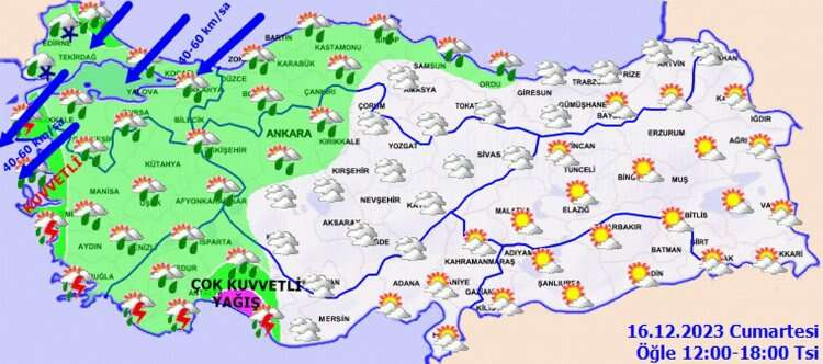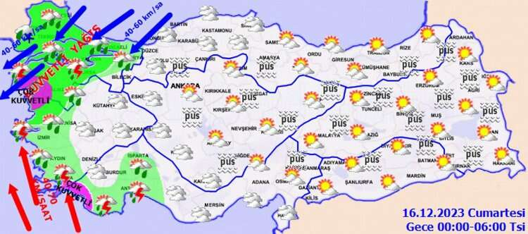 * “Yağışların, Marmara, Kıyı Ege ve Batı Akdeniz kıyılarında kuvvetli, Çanakkale’nin güney, Balıkesir’in batı kıyıları, Muğla kıyıları ile Antalya’nın doğu ilçelerinde çok kuvvetli olması beklendiğinden yaşanabilecek olumsuzluklara karşı ulaşımda aksamalar vb. dikkatli ve tedbirli olunmalıdır.